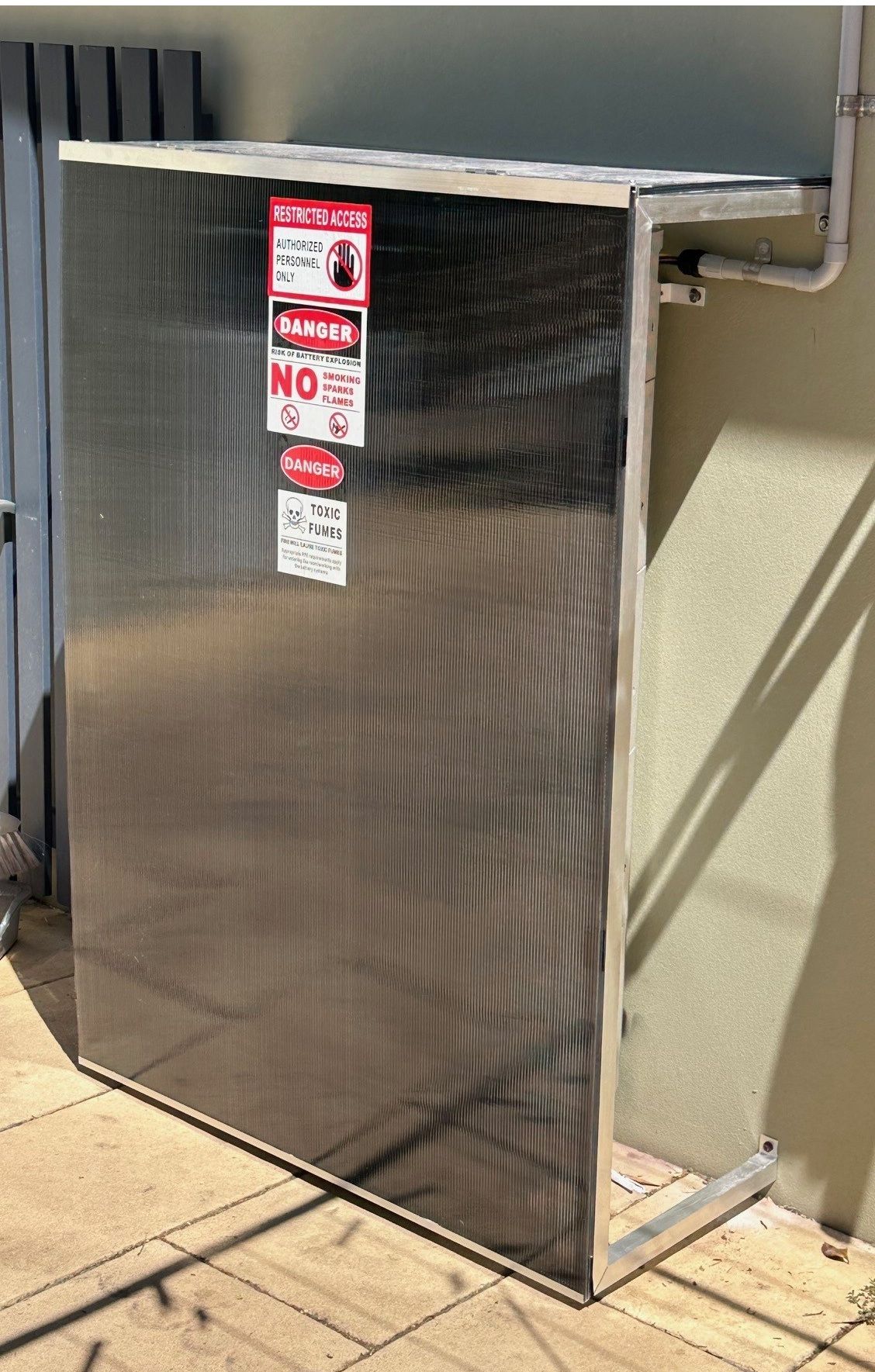 Built for the Harsh Aussie SunKey Features High-Strength Aluminum Alloy Frame- Rigid and corrosion-resistant. Polycarbonate (PC) Sunlight Panel – Lightweight and impact-resistant. Outstanding UV Protection. UV blocking rate>=99%, fully blocks 280-400nm UV. Build for Australia’s extreme sun exposure. Solar shading Efficiency. SC 0.4-0.5, reduces glare and heat. Heat Control. g-value 0.3-0.4, only 30- 40% solar heat passes though. Outdoor Durabililty. After 4000 hours acceslarated UV aging, yellowing Index change ΔYI ≤ 2, tensile strength retention ≥ 85%. Designed for long-term outdoor use with strong resistance to yellowing and embrittlement. Thermal Insulation. (K-value): Approximately 2.35 W/(m²·K). The hollow structure of the honeycomb core further enhances thermal insulation performance. Service life: 10 years Anti-Aging Design. Easy Installation and removable front panel for battery service and maintenance. Product Sizes: Model: GYO1-1400(H) x 1000(W) x 430 (D) Model: GYO2-1400(H) x 1000(W) x 330 (D) Model: GYO3-1050(H) x 1000(W) x 330 (D) GYO Energy 0411320212